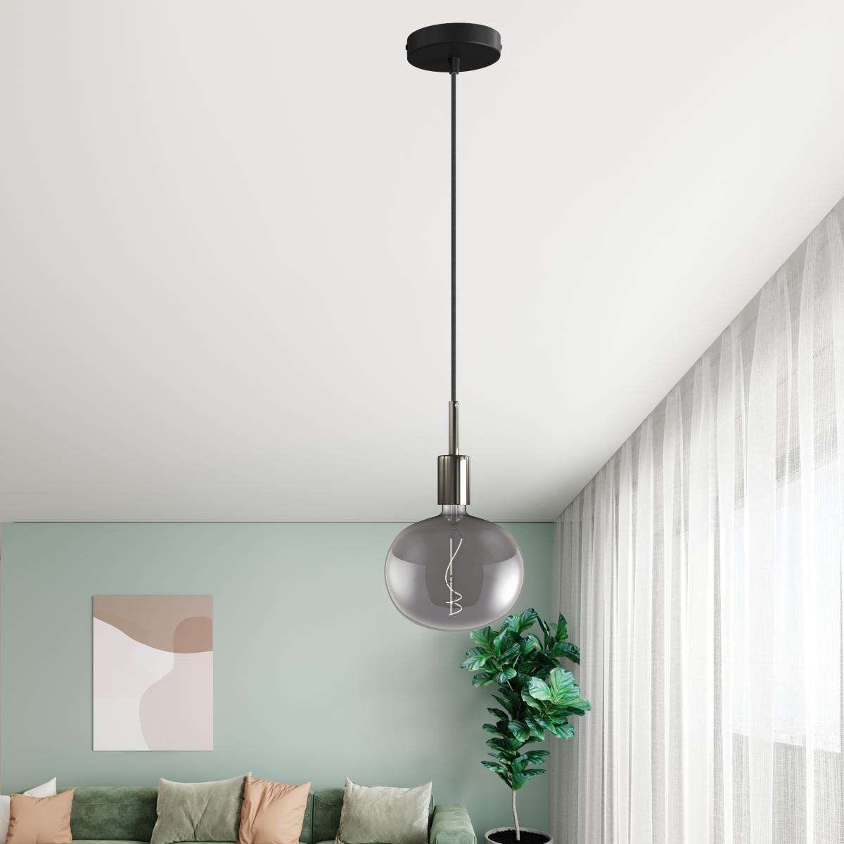 Portalampada : 1X [KBM4011BRTERM4] Kit portalampada E27 cilindrico in metallo con serracavo da 7 cm - Finish: Black pearl